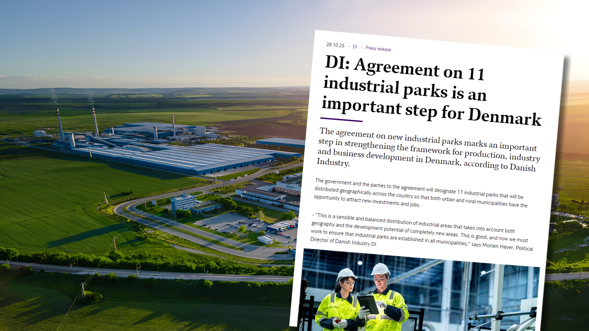 The designation positions Aabenraa Municipality as a central player in Denmark’s new national strategy to strengthen industrial production and green innovation. The announcement was also highlighted in the Aabenraa Kommune's press release (in Danish). The 11 industrial parks are established under the political agreement Rød løber for produktionsvirksomheder (Red Carpet for Production Companies), which aims to create favourable conditions for businesses that wish to invest and produce in Denmark.