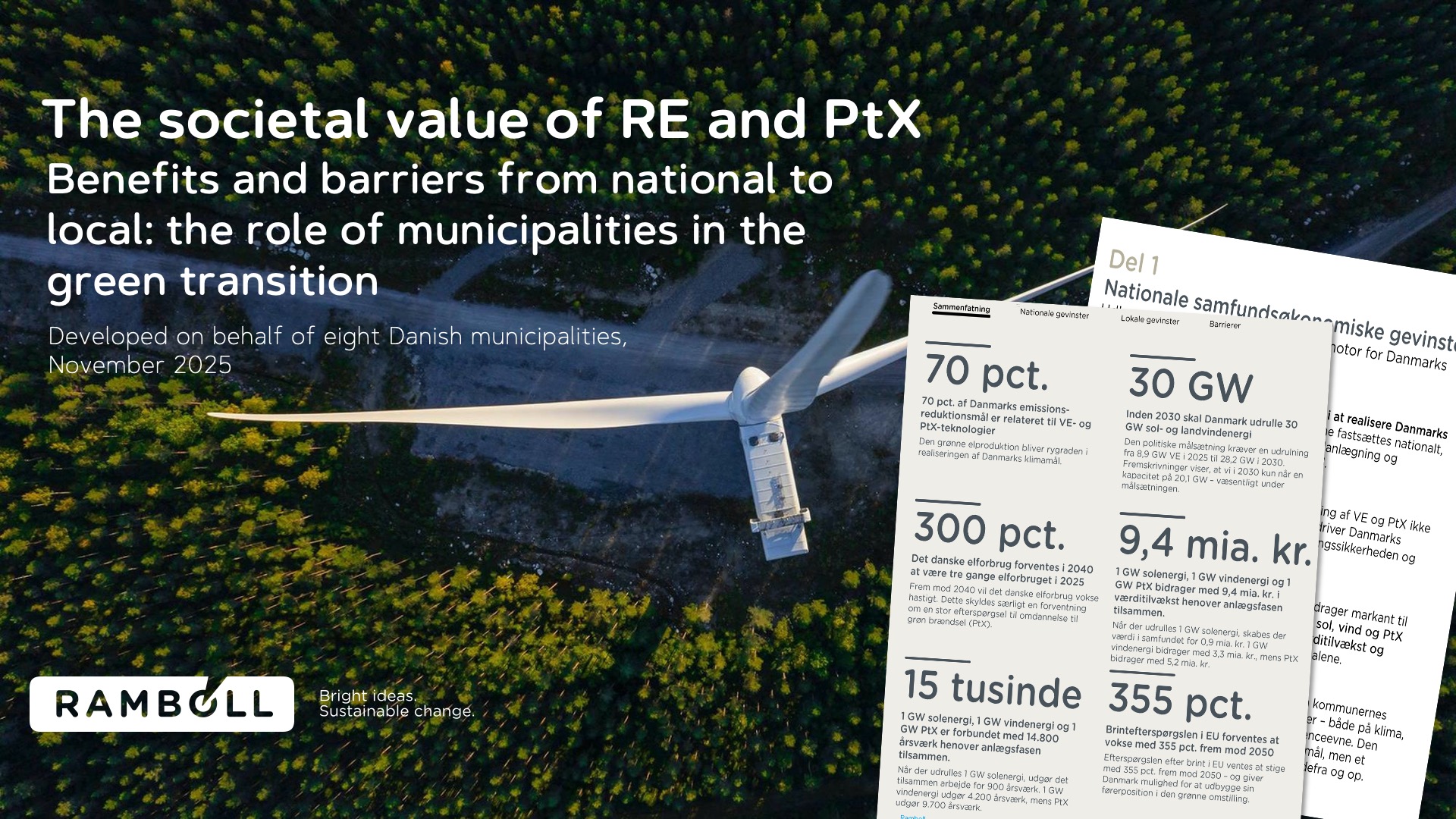 A new analysis by Ramboll Management Consulting, developed for eight Danish municipalities on the initiative of Aabenraa Municipality, shows that the expansion of renewable energy and Power-to-X creates significant local value – not only through new jobs, but also via investments, green initiatives and community development.
